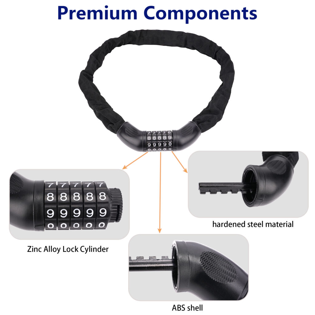 Weatherproof materials extend the lifespan of your bike lock. Look for nylon sleeves or coated chains that prevent rust and protect your bike frame. These features are especially helpful for riders who park outdoors daily.