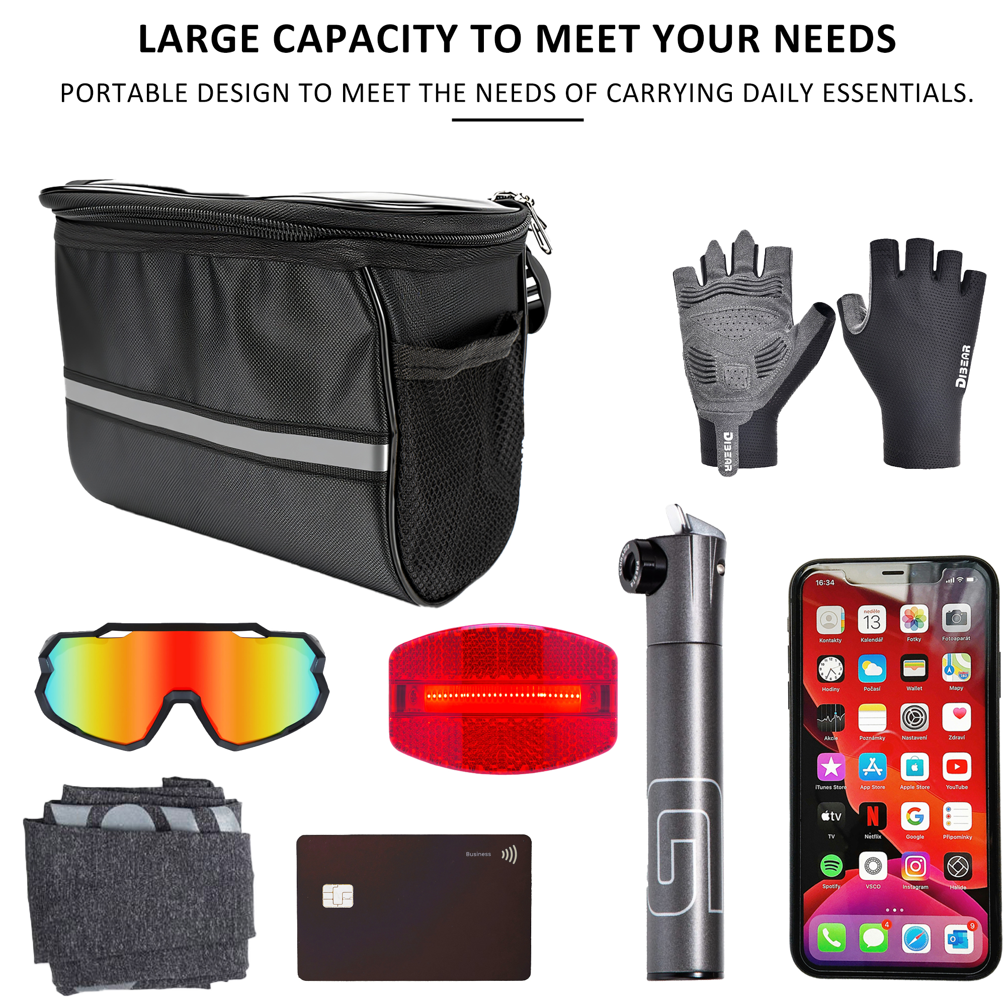 RidingRush Bike Handlebar Bag – Waterproof Bicycle Handlebar Bag with Reflective Strip, Lightweight Front Storage Pouch for Road & Mountain Bikes, Easy Installation Cycling Organizer