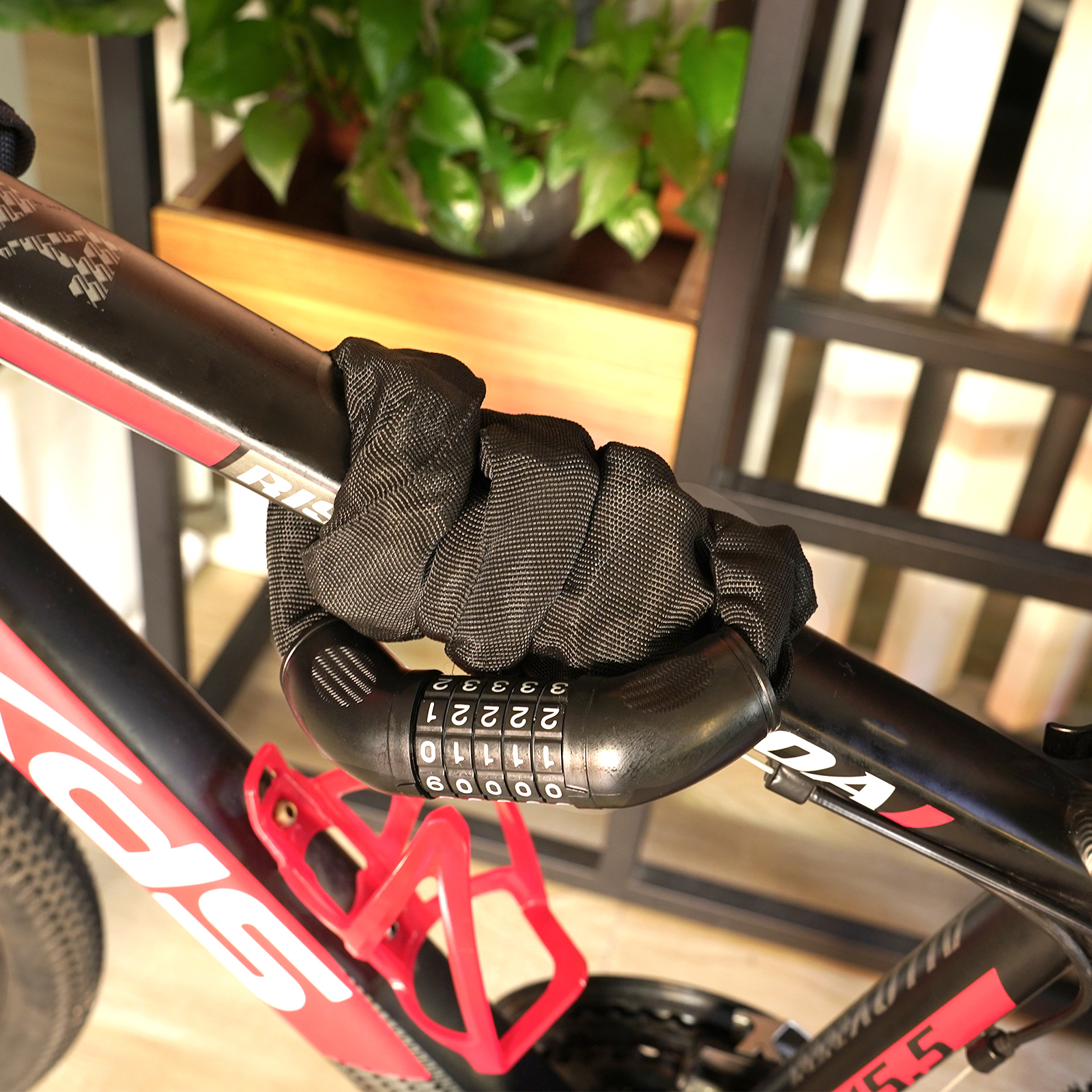 Built with steel and covered in a soft nylon sheath, this 4-digit combination lock ensures top-level anti-theft protection without the need for keys.