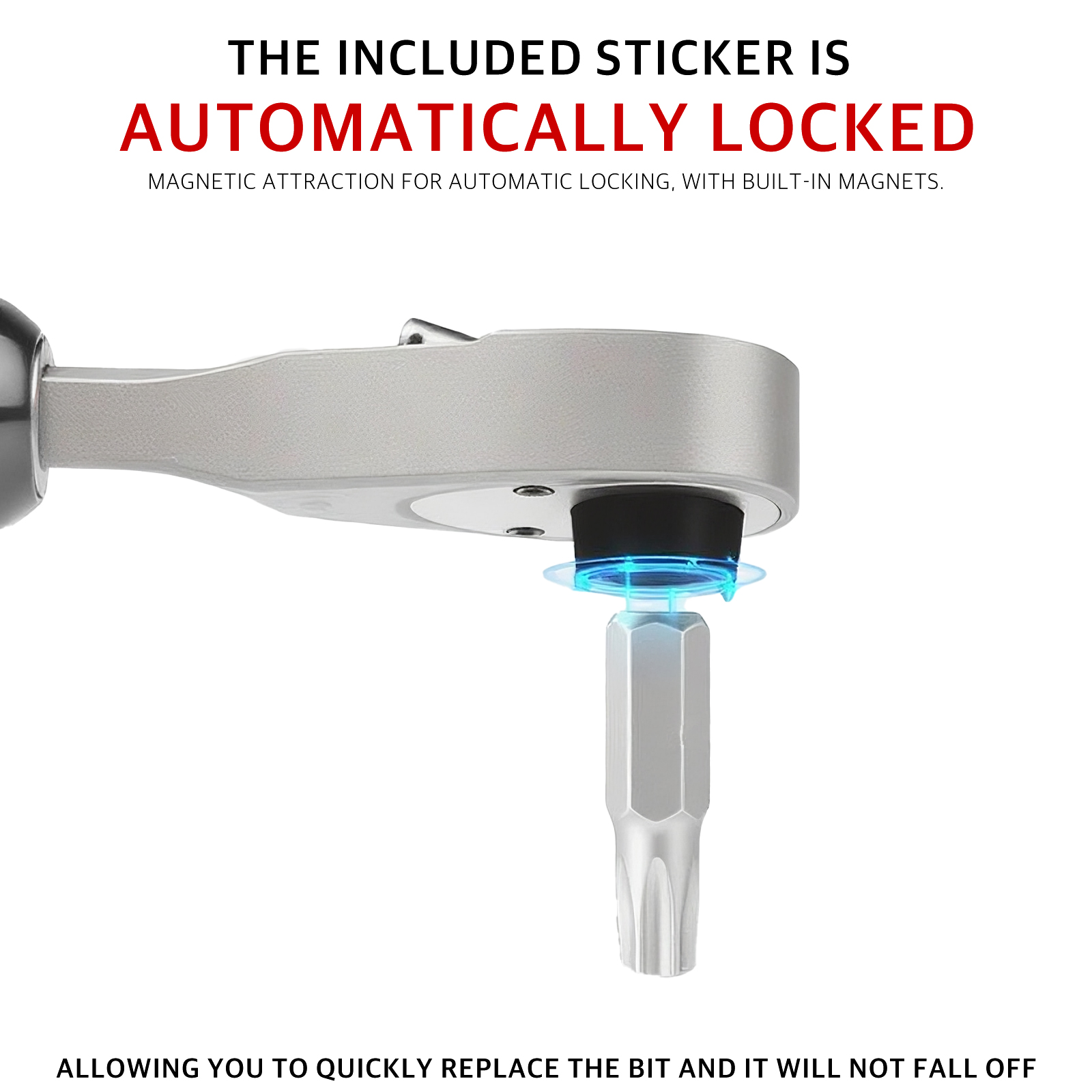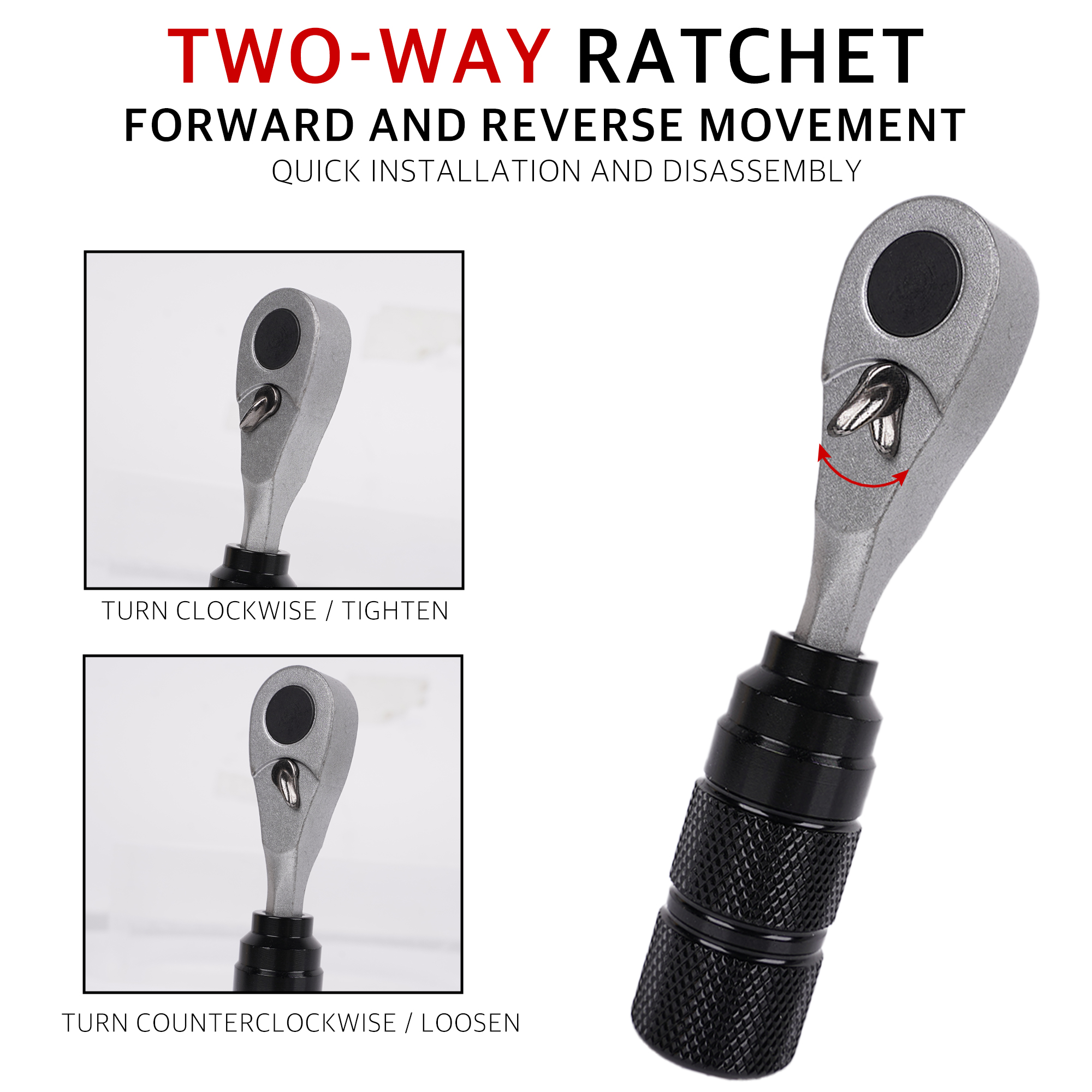 The ratchet wrench features magnetic heads to securely hold screws in place, preventing them from falling or getting lost. This magnetic feature makes repairs more efficient, especially when replacing components, allowing for a faster and more convenient repair process.
