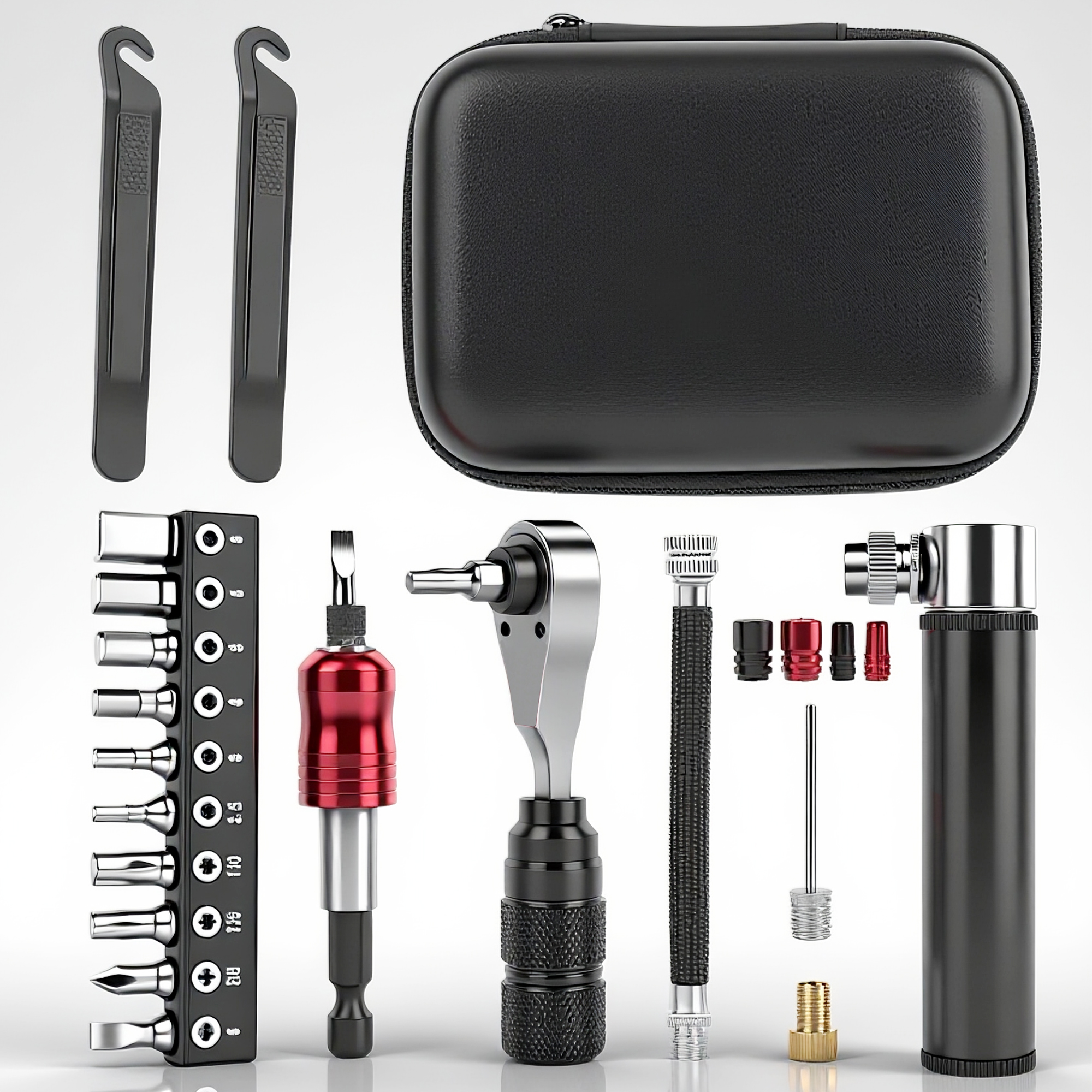 Compact and Portable Design – Good for cyclists on the go, this compact tool kit includes more essentials like tire levers, valve caps, and a ratchet wrench in a convenient carrying case.