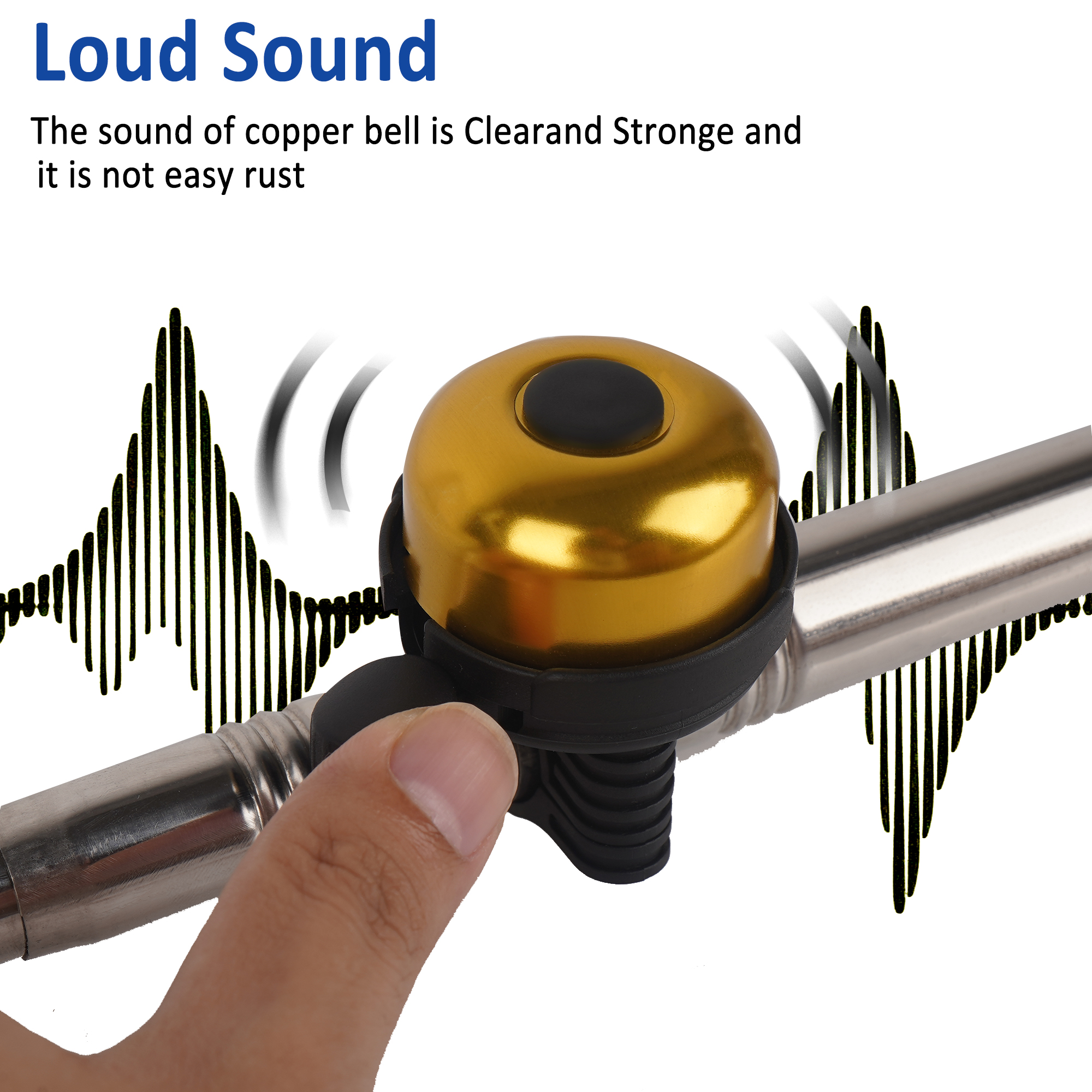 Designed with a metallic gold top and a reliable push lever, it helps riders signal their presence in a fun and effective way.