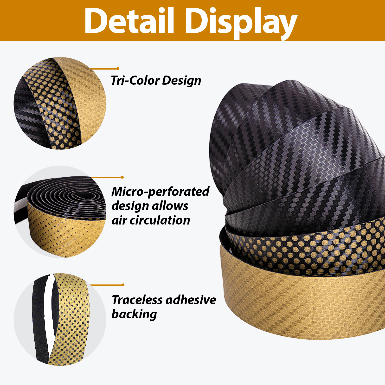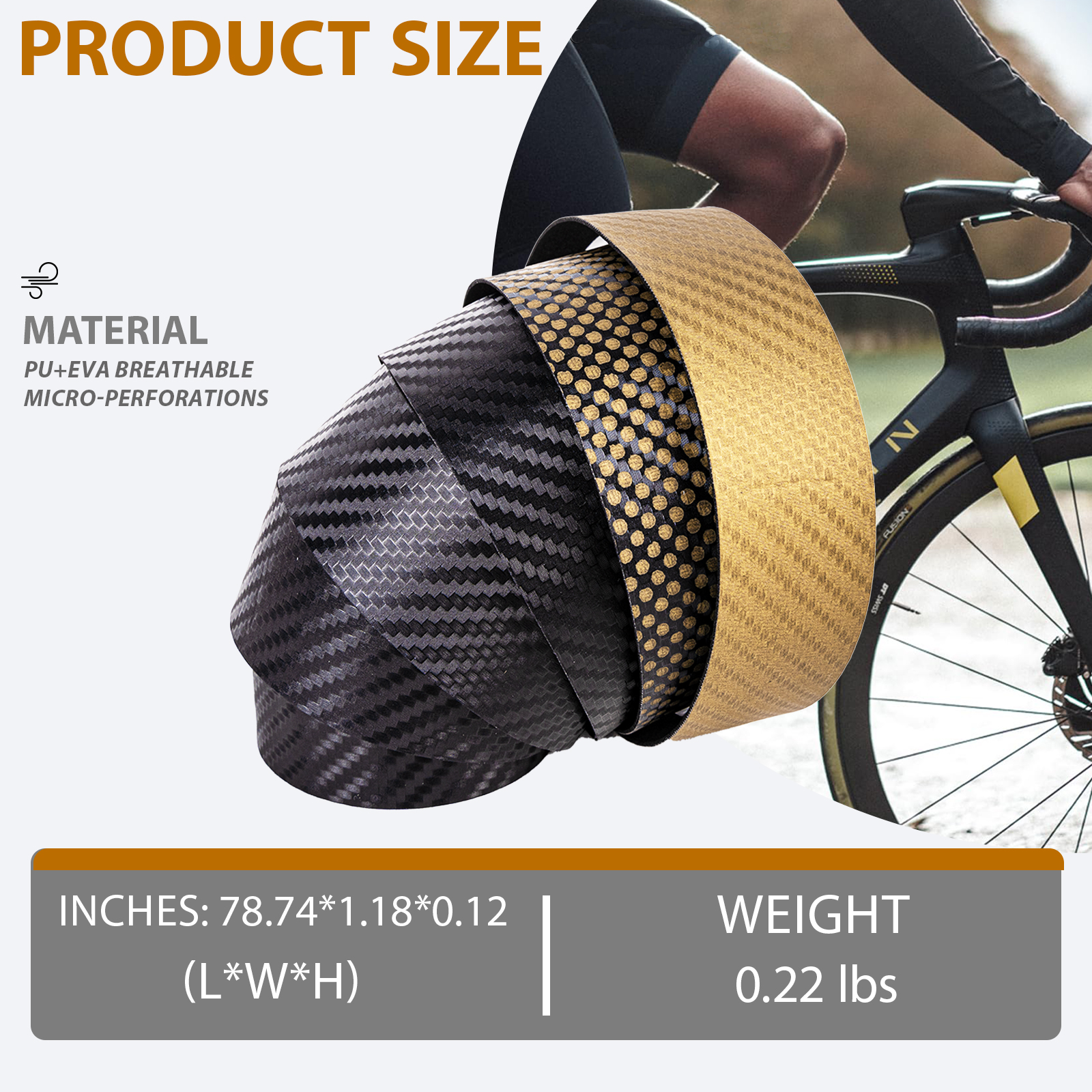 With a striking gold-tone carbon fiber texture, this tape upgrades your bike with a unique metallic flair and modern style.